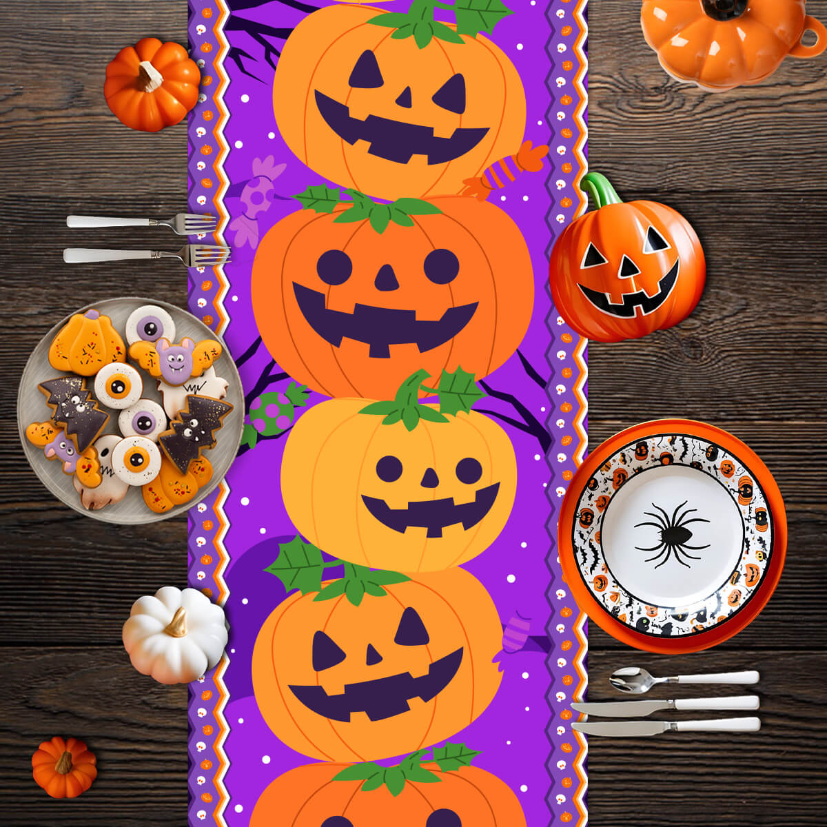 🎃 ¡Haz que tu mesa brille con nuestros caminos de mesa temáticos para Halloween y Día de Muertos! 💀✨