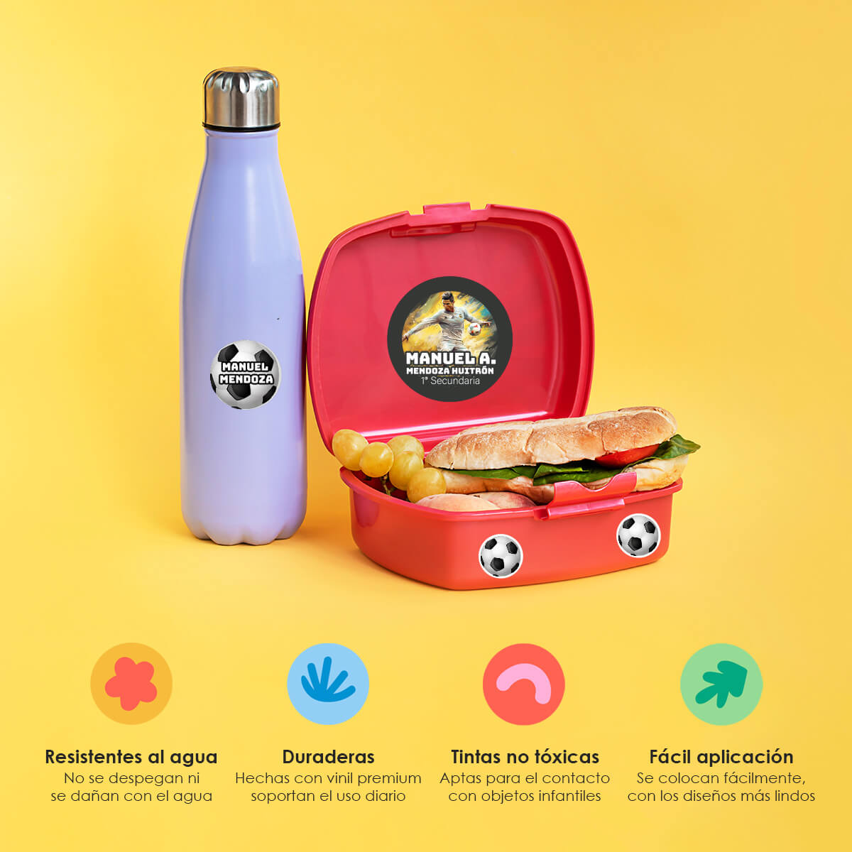 Luncheras y botellas de agua: Etiqueta las luncheras, botellas de agua, termos, y recipientes de comida para asegurarte de que tus hijos siempre sepan cuáles son sus pertenencias.
