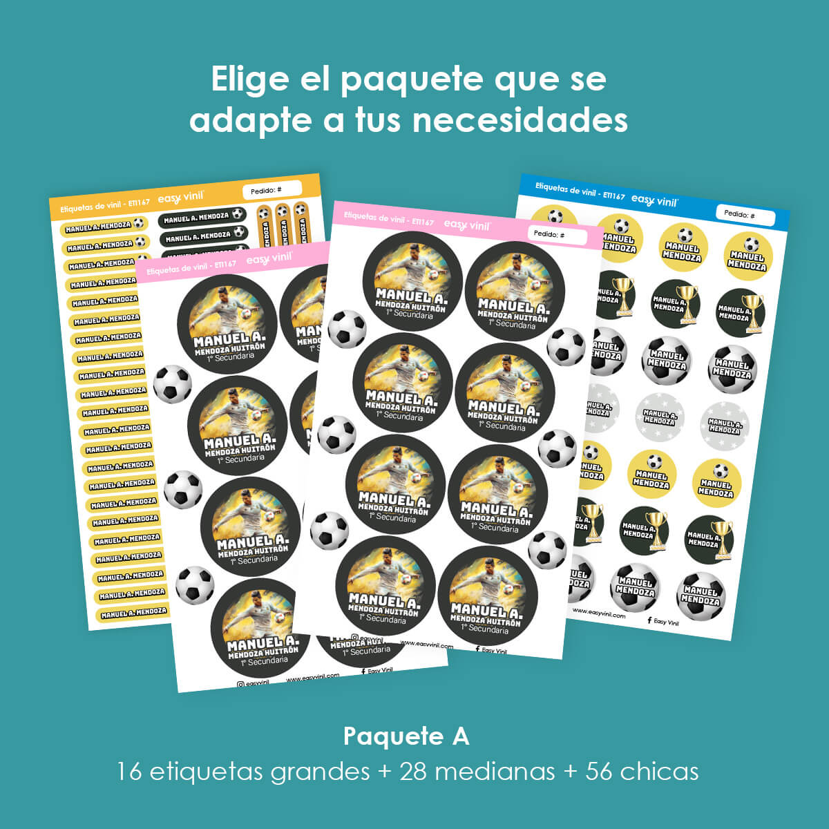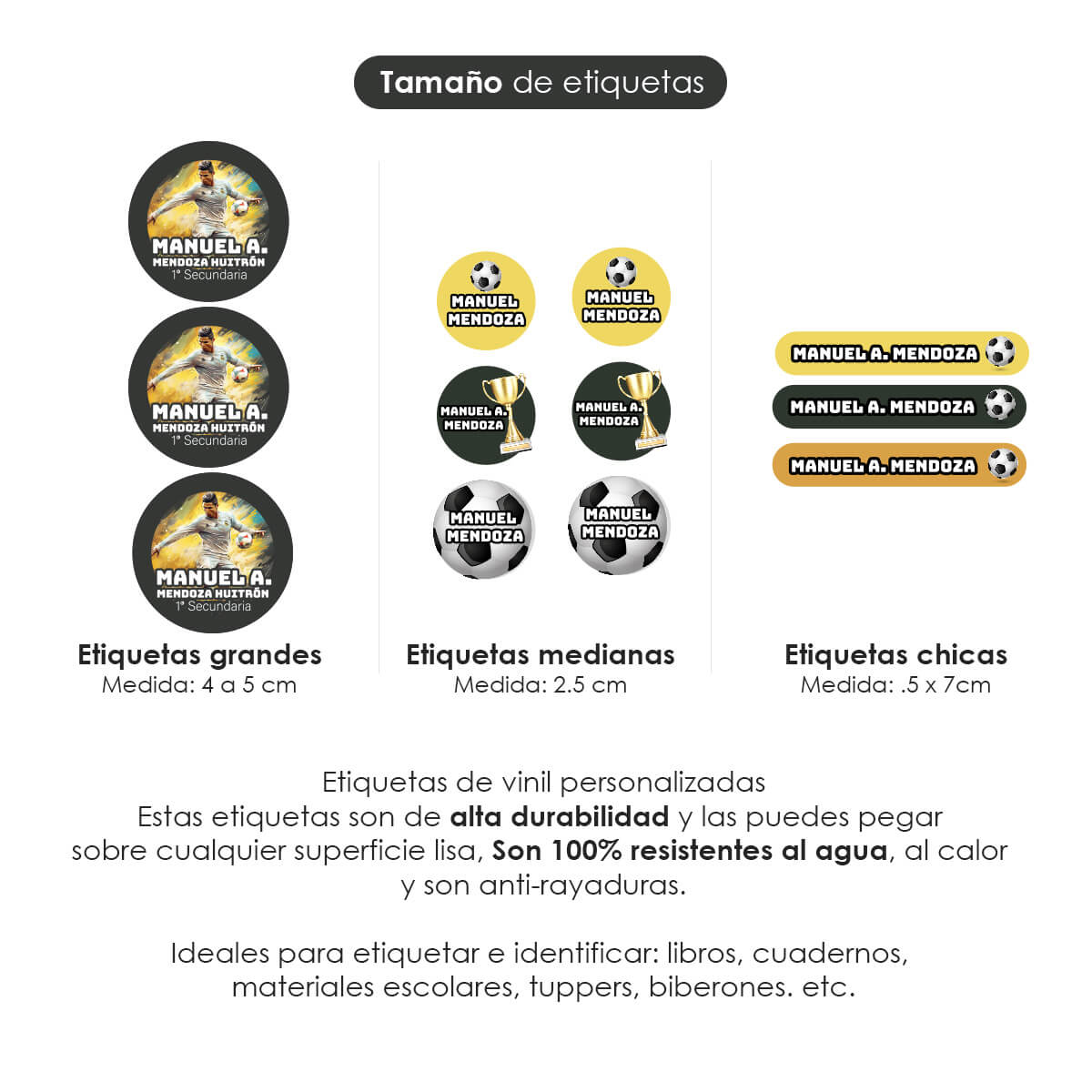 Importante: solo en la etiqueta grande podrás agregar el grado y la escuela.