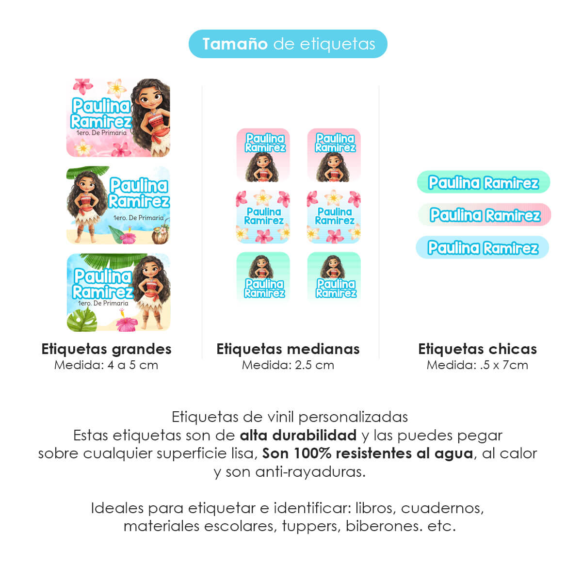 Etiqueta de manera fácil y divertida libros, cuadernos, vasos, luncheras, botellas , lápices, materiales escolares, juguetes, artículos de guardería y mucho más.