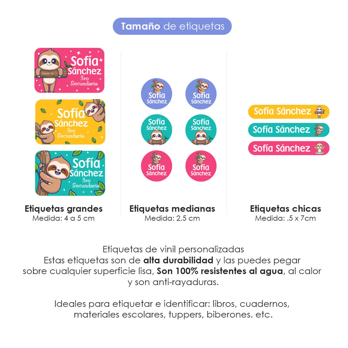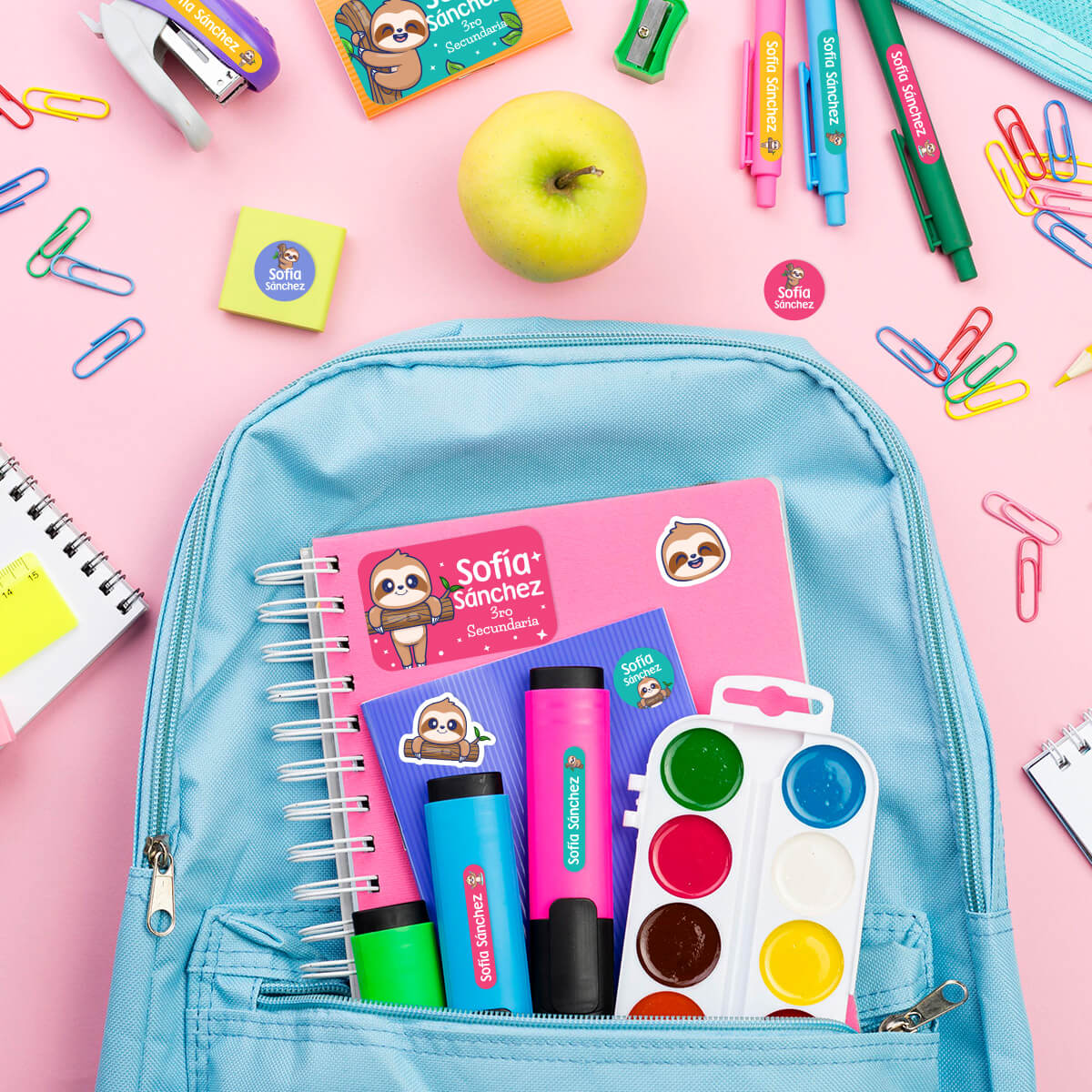 Nuestras etiquetas adhesivas son la solución perfecta para mantener todo ordenado y añadir un toque de diversión a la rutina escolar.