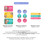 🤩¡Personaliza y organiza las pertenencias de tus pequeños de manera divertida y ya no pierdas más tiempo buscando las pertenencias de tus pequeños! Nuestras etiquetas son duraderas y resistentes, diseñadas para soportar el uso diario y mantenerse intactas.