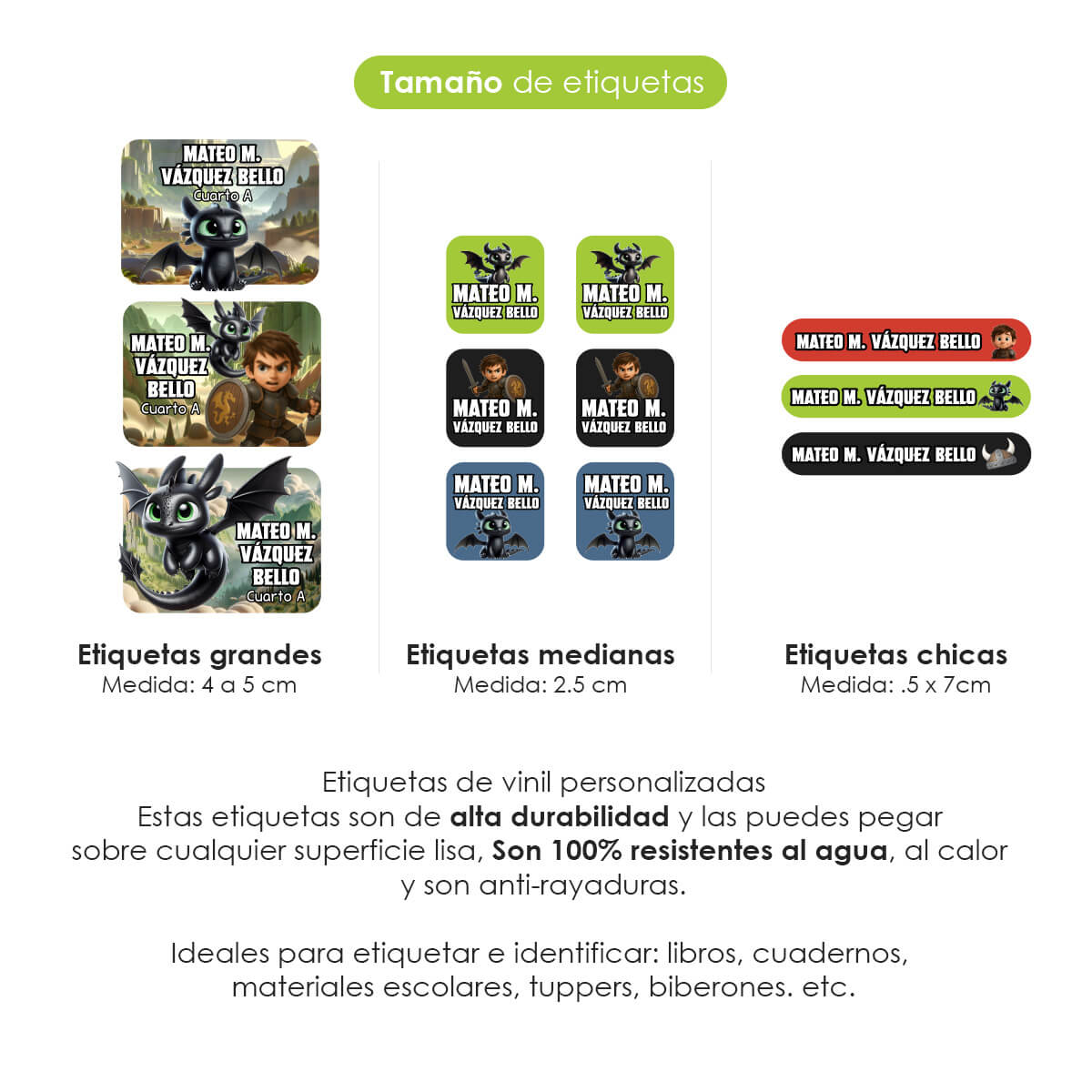 Importante: solo en la etiqueta grande podrás agregar el grado y la escuela.