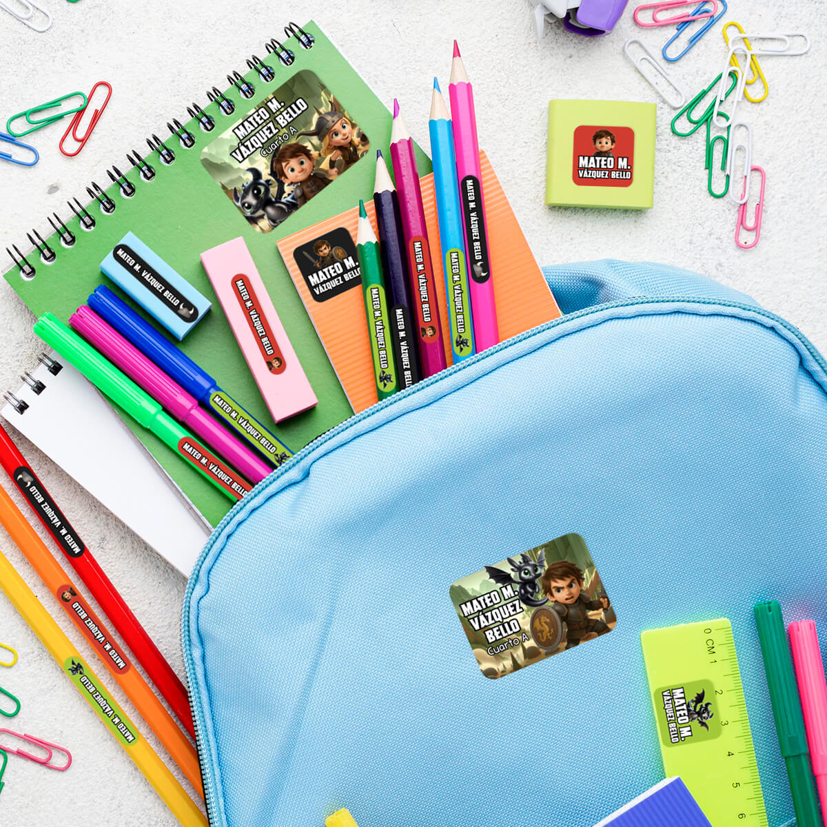 Nuestras etiquetas adhesivas son la solución perfecta para mantener todo ordenado y añadir un toque de diversión a la rutina escolar.