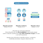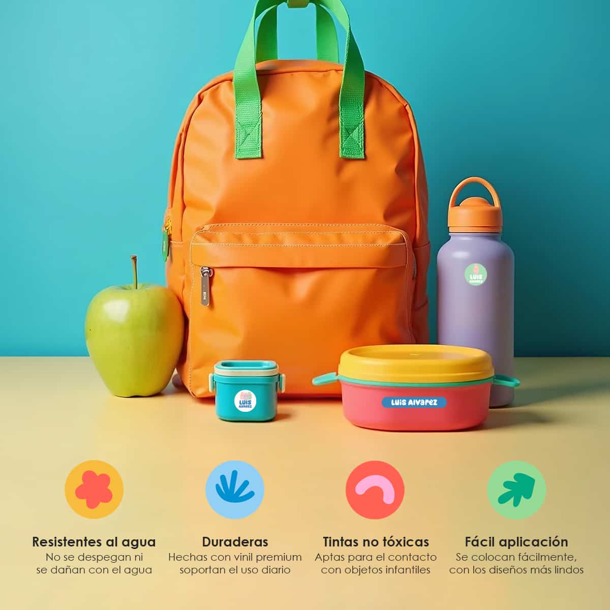 Nuestras etiquetas adhesivas están diseñadas para resistir el ajetreo y el movimiento diario de los niños. No importa si están en la mochila, la lonchera o los libros, nuestras etiquetas permanecerán intactas.