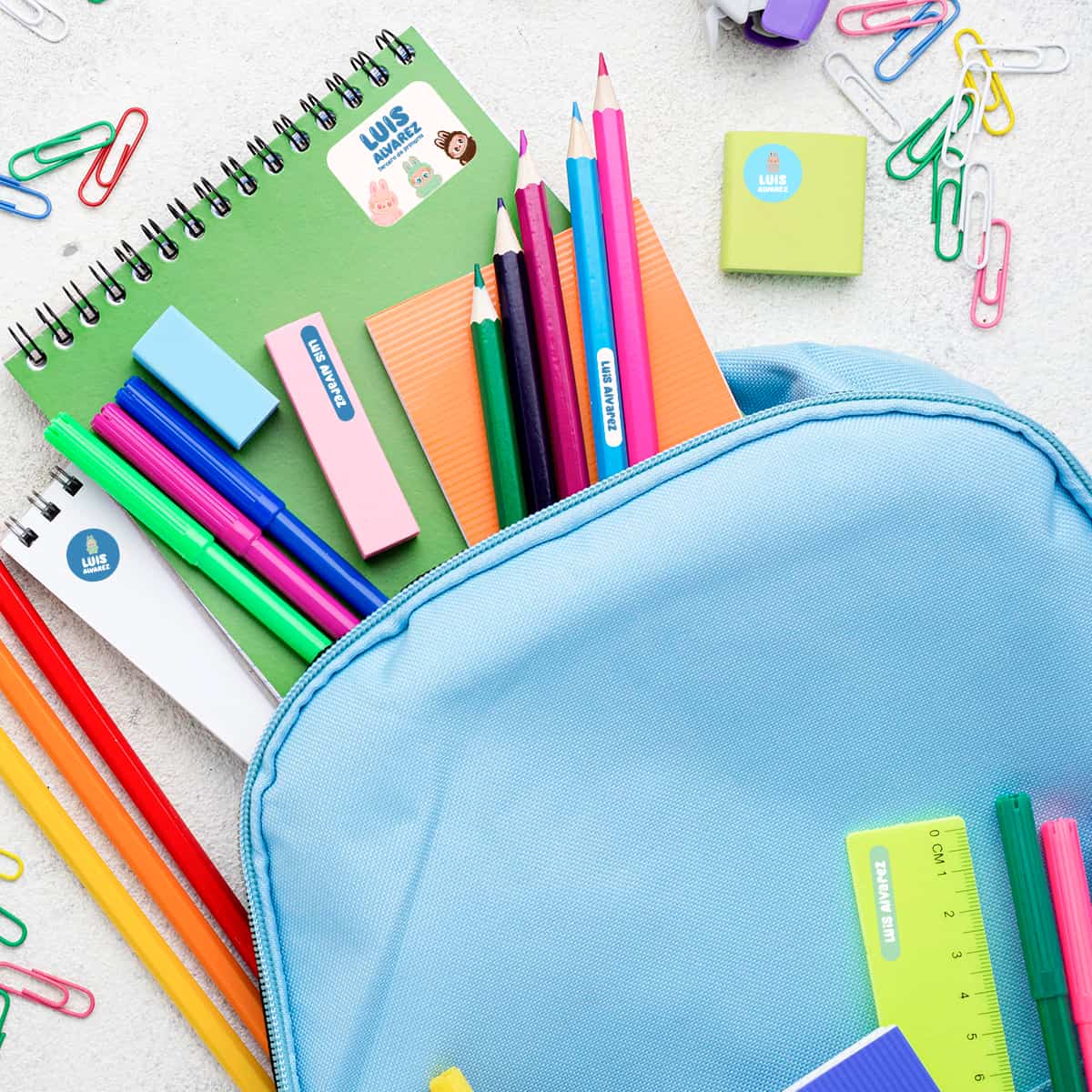 Nuestras etiquetas adhesivas son la solución perfecta para mantener todo ordenado y añadir un toque de diversión a la rutina escolar.