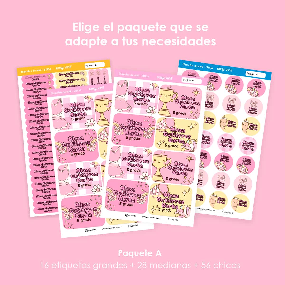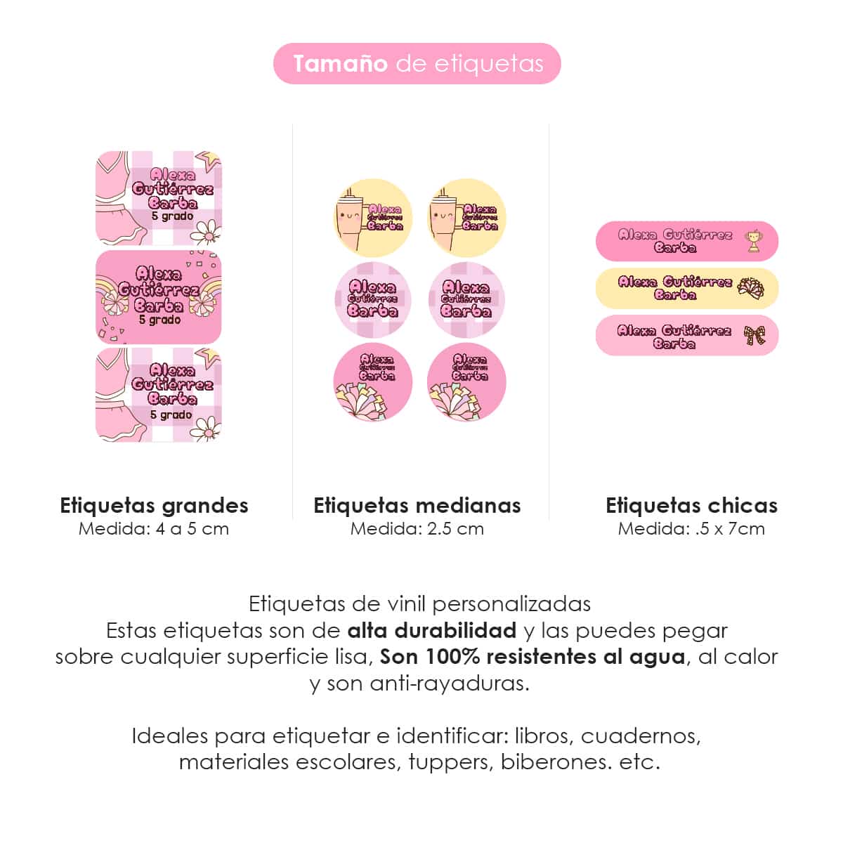 Importante: solo en la etiqueta grande podrás agregar el grado y la escuela.