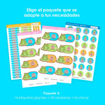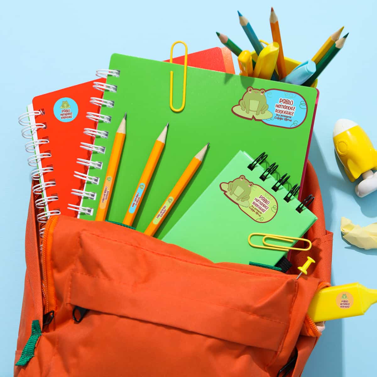Nuestras etiquetas adhesivas son la solución perfecta para mantener todo ordenado y añadir un toque de diversión a la rutina escolar.