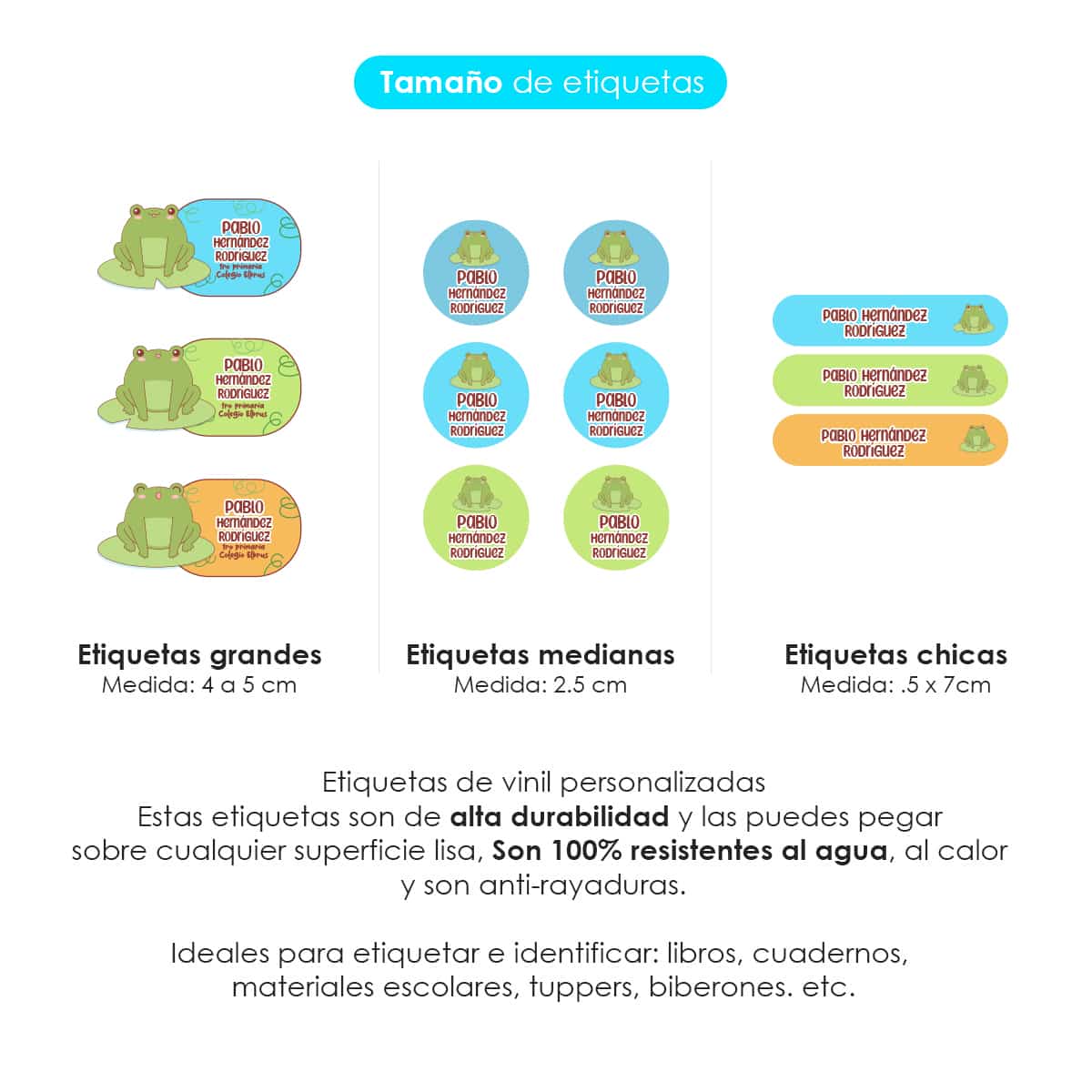 Importante: solo en la etiqueta grande podrás agregar el grado y la escuela.