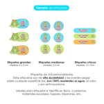 Nuestras etiquetas adhesivas están diseñadas para resistir el ajetreo y el movimiento diario de los niños. No importa si están en la mochila, la lonchera o los libros, nuestras etiquetas permanecerán intactas.