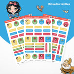 Las etiquetas se aplican con calor y quedan adheridas perfectamente a la tela. Son lavables y con diseños super lindos.