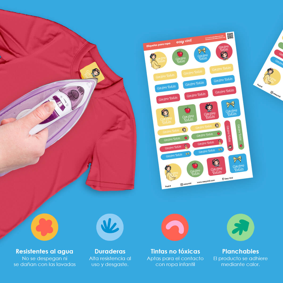 Identificar las ropa de tus pequeños será mucho más fácil con nuestras etiquetas de vinil textil. ¡Ya no pierdas nada! Son perfectas para etiquetar todo lo que se te ocurra: playeras, camisas, pantalones, sombreros, mamelucos.