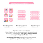 Las etiquetas se aplican con calor y quedan adheridas perfectamente a la tela. Son lavables y con diseños super lindos.