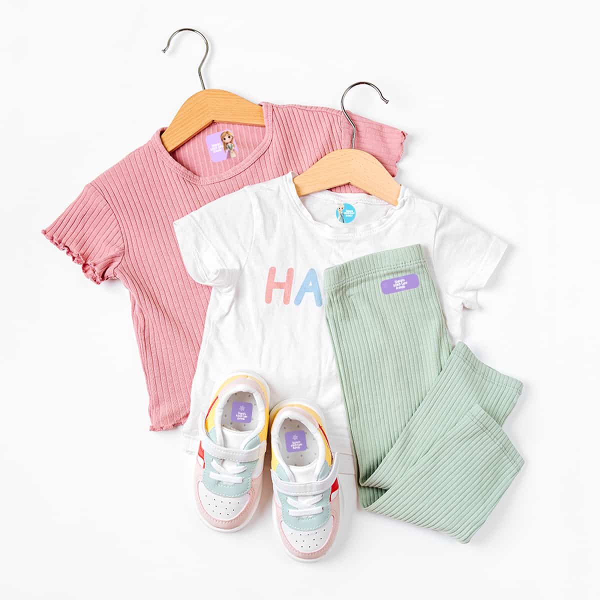 Las etiquetas se aplican con calor y quedan adheridas perfectamente a la tela. Son lavables y con diseños super lindos.