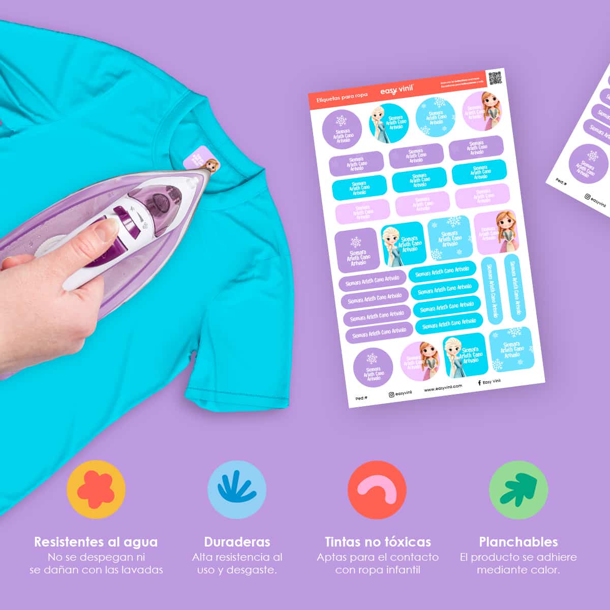 Las etiquetas Easy Vinil están fabricadas con materiales de la más alta calidad y cuentan con un sistema de adhesión que permite que se adhieran a casi cualquier tipo de tela.