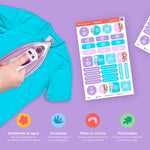 Una vez que las planches en la ropa... se quedan ahí. Puedes etiquetar playeras, camisas, calcetines, pañales lavables, etc.