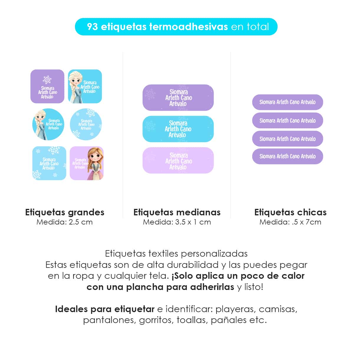 Contamos con una gran variedad de diseños y puedes elegir el que vaya mejor con los gustos y personalidad de tu pequeño. Estas etiquetas son de alta durabilidad y las puedes pegar sobre la ropa. Se pueden lavar, meter a la secadora, y planchar ¡No se despegan ni se despinta!