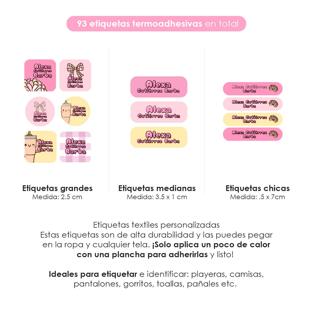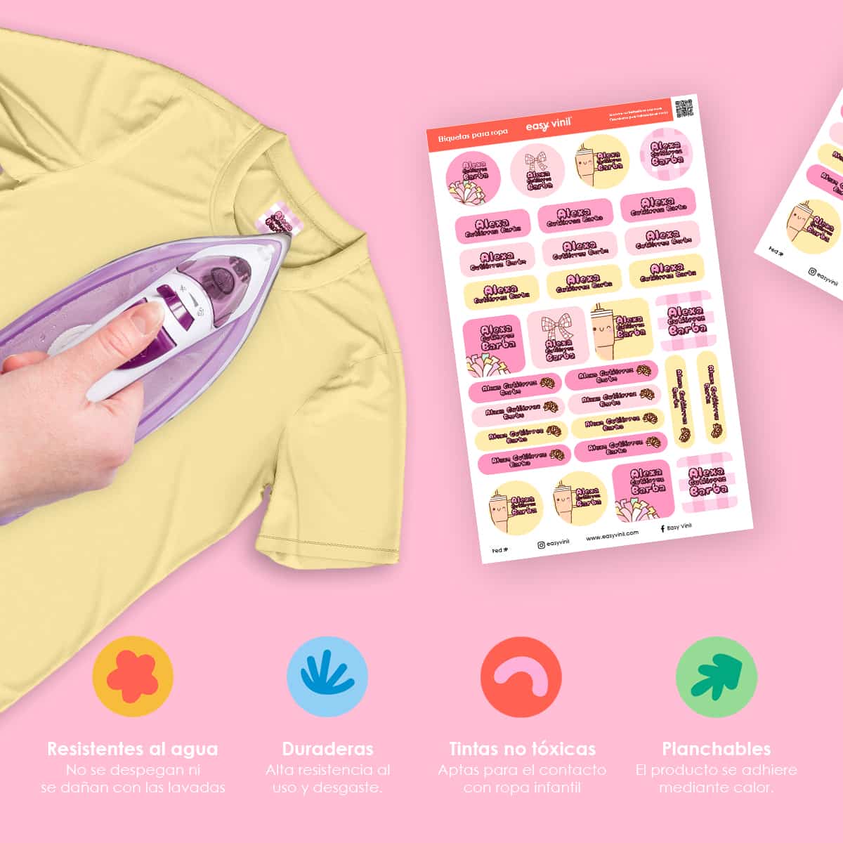 Las etiquetas se aplican con calor y quedan adheridas perfectamente a la tela. Son lavables y con diseños super lindos.