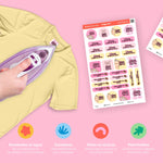 Una vez que las planches en la ropa... se quedan ahí.  Puedes etiquetar playeras, camisas, calcetines, pañales lavables, etc.