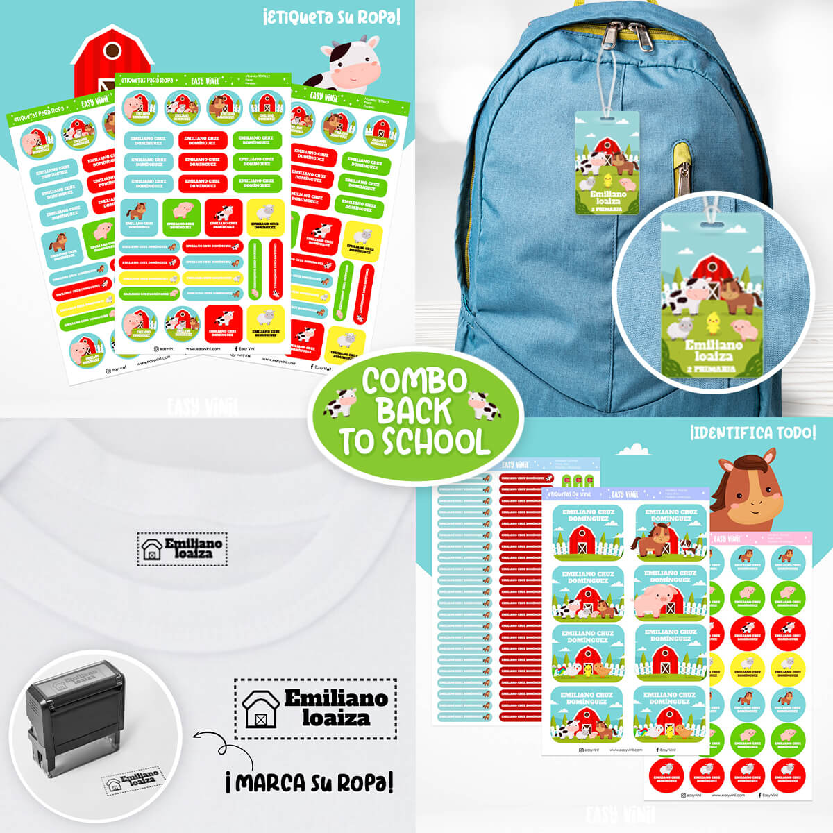 El combo back to school ha sido pensado para etiquetar rápidamente todas las pertenencias que los más chiquitos necesitan.