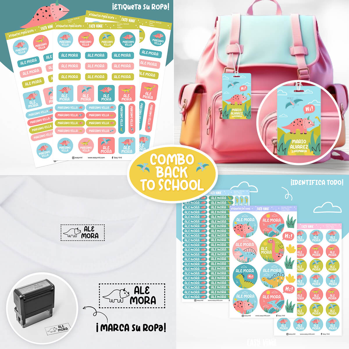 El combo back to school ha sido pensado para etiquetar rápidamente todas las pertenencias que los más chiquitos necesitan.