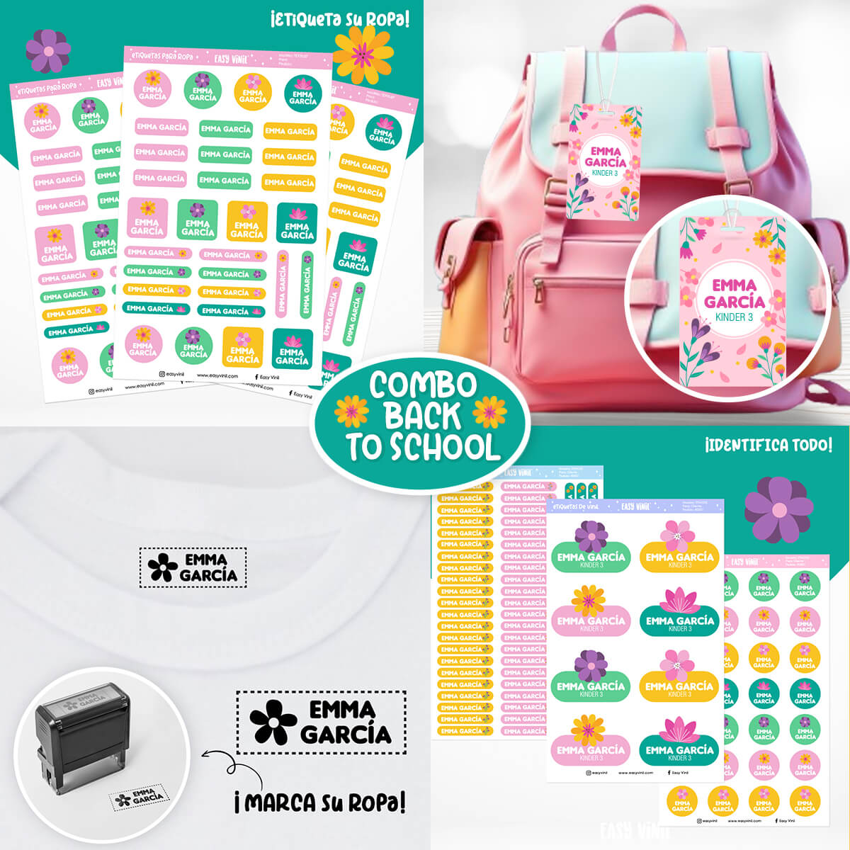 El combo back to school ha sido pensado para etiquetar rápidamente todas las pertenencias que los más chiquitos necesitan.