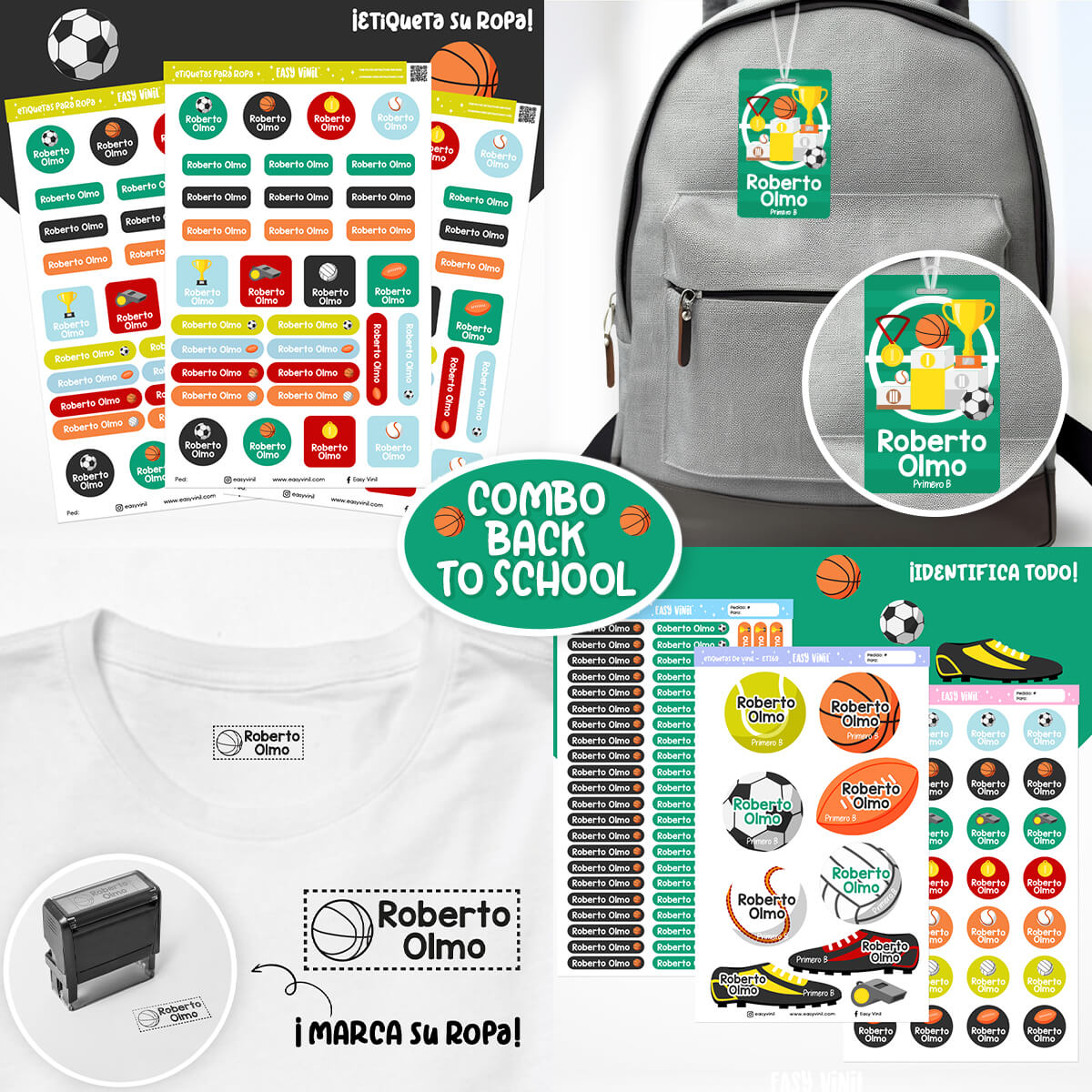 El combo back to school ha sido pensado para etiquetar rápidamente todas las pertenencias que los más chiquitos necesitan.
