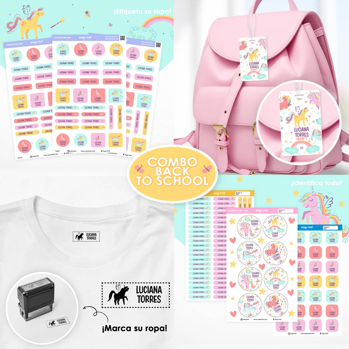 El combo back to school ha sido pensado para etiquetar rápidamente todas las pertenencias que los más chiquitos necesitan.