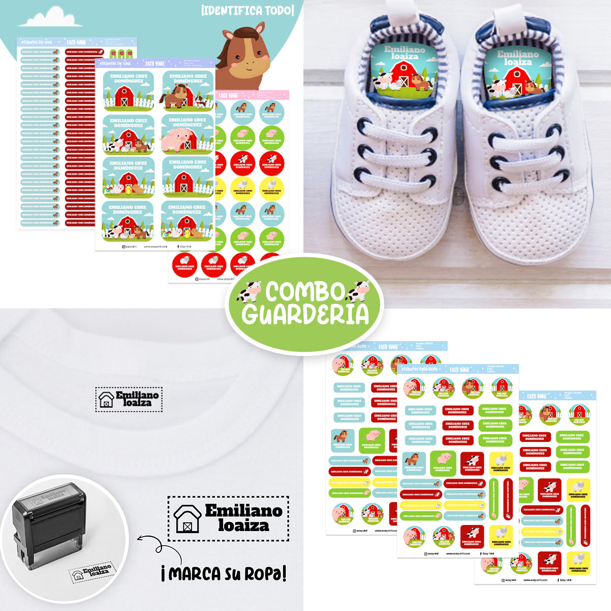 El combo guardería ha sido pensado para etiquetar rápidamente todas las pertenencias que los más chiquitos necesitan.