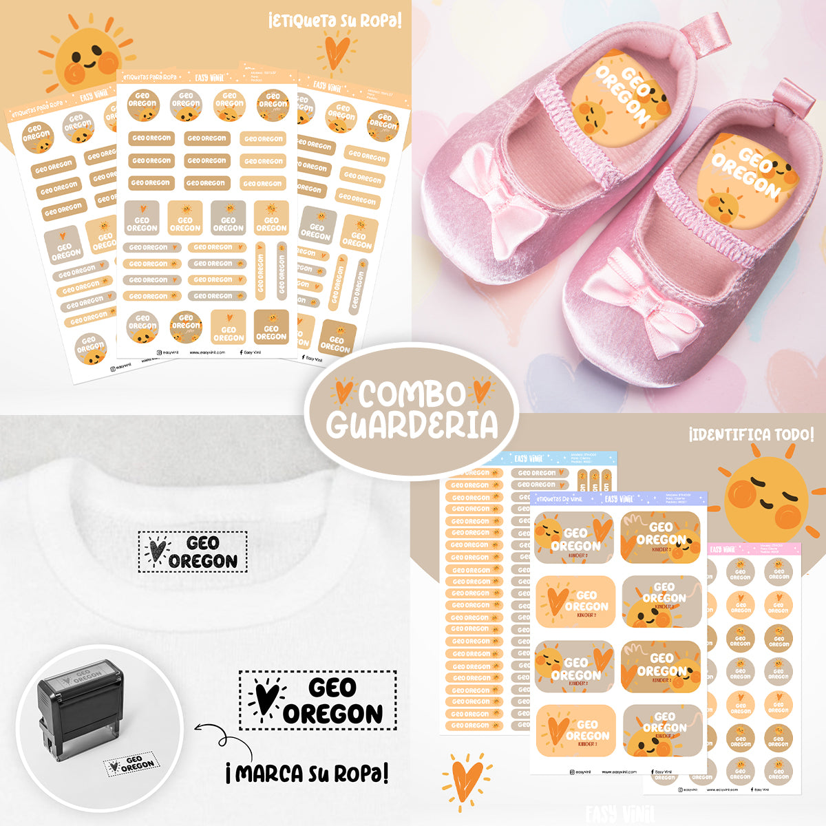El combo guardería ha sido pensado para etiquetar rápidamente todas las pertenencias que los más chiquitos necesitan.