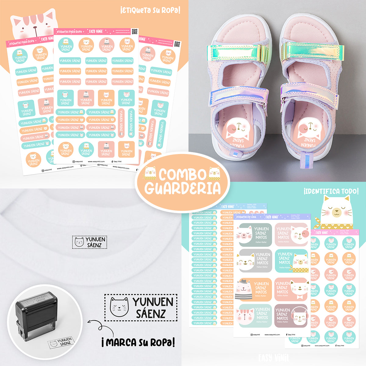 El combo guardería ha sido pensado para etiquetar rápidamente todas las pertenencias que los más chiquitos necesitan.