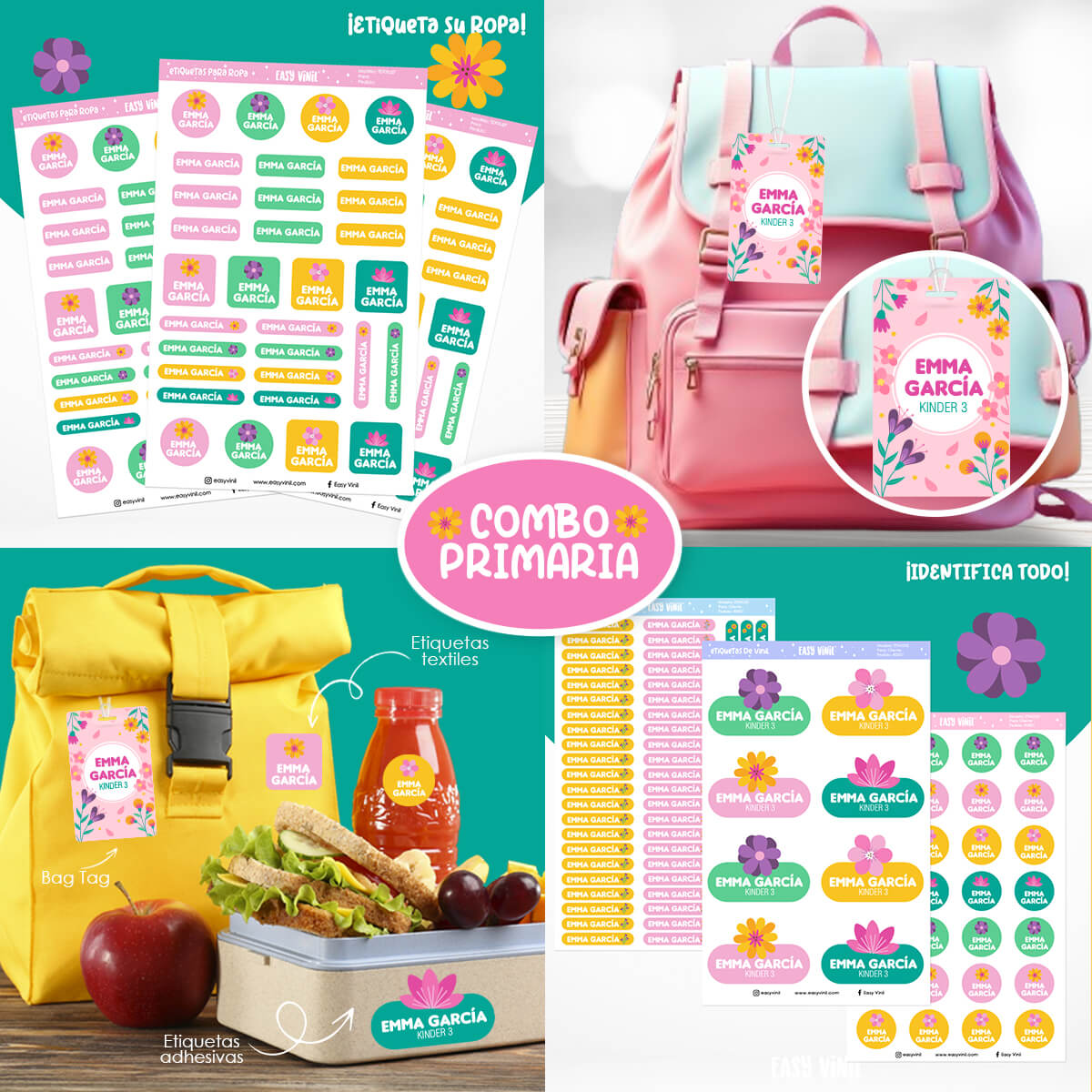 El combo primaria ha sido pensado para etiquetar rápidamente todas las pertenencias que los más chiquitos necesitan.