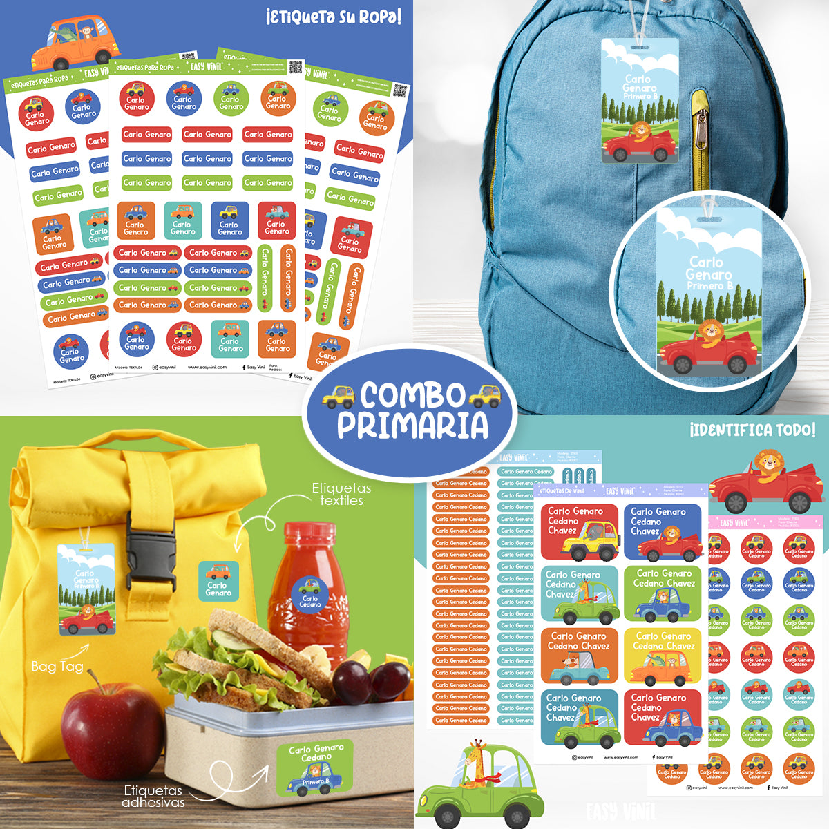 El combo primaria ha sido pensado para etiquetar rápidamente todas las pertenencias que los más chiquitos necesitan.