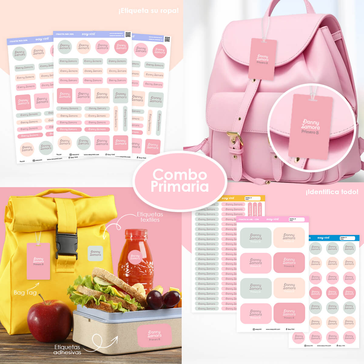 El combo primaria ha sido pensado para etiquetar rápidamente todas las pertenencias que los más chiquitos necesitan.