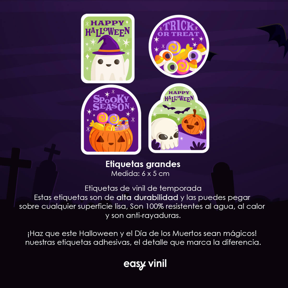 🎃Etiquetas de vinil de temporada perfectas para etiquetar regalos, bolsas de dulces, o decorar una fiesta temática.