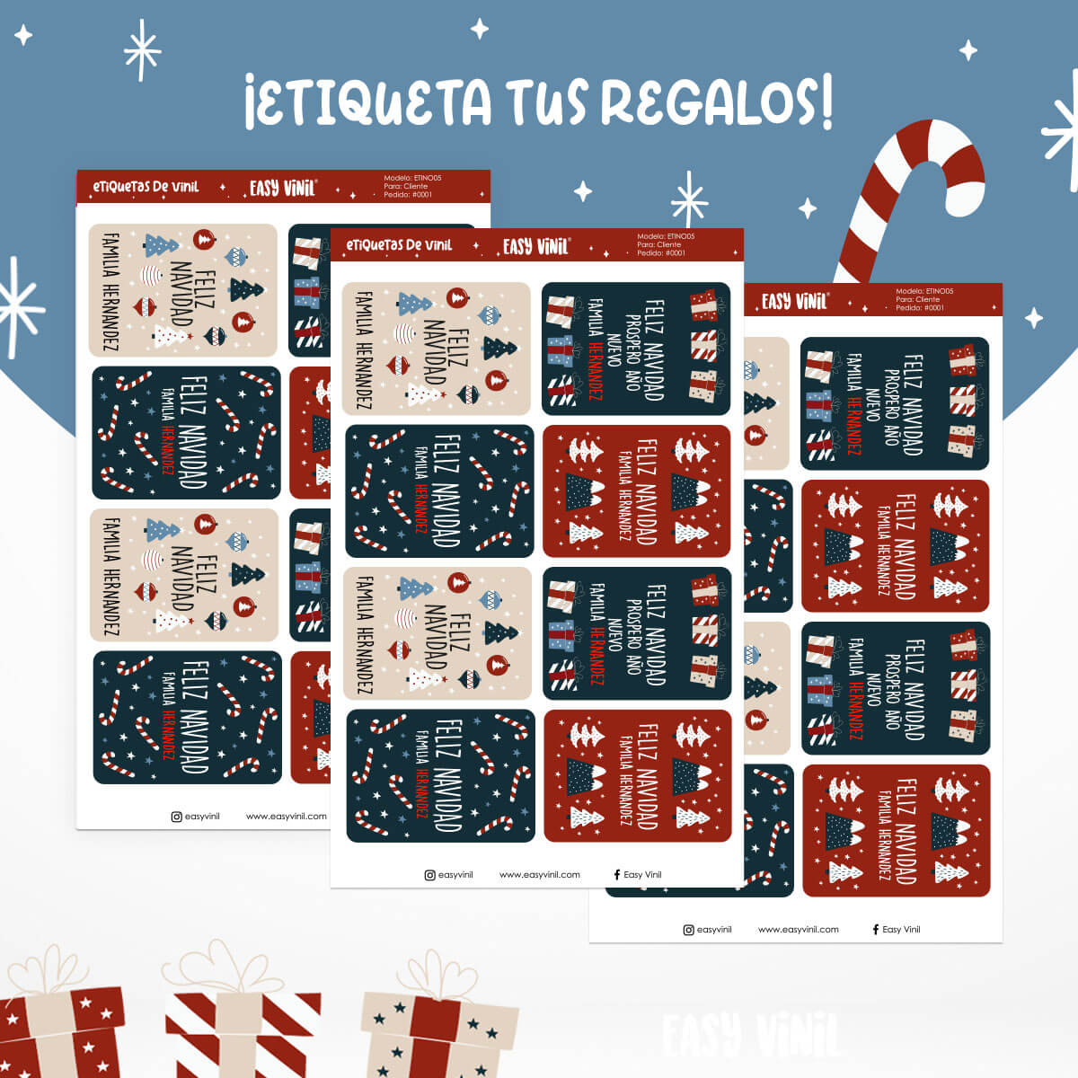 Etiquetas de vinil de temporada perfectas para etiquetar tus regalos navideños. Personalizalas con el nombre que desees. Ideales para los intercambios y detalles de la época.