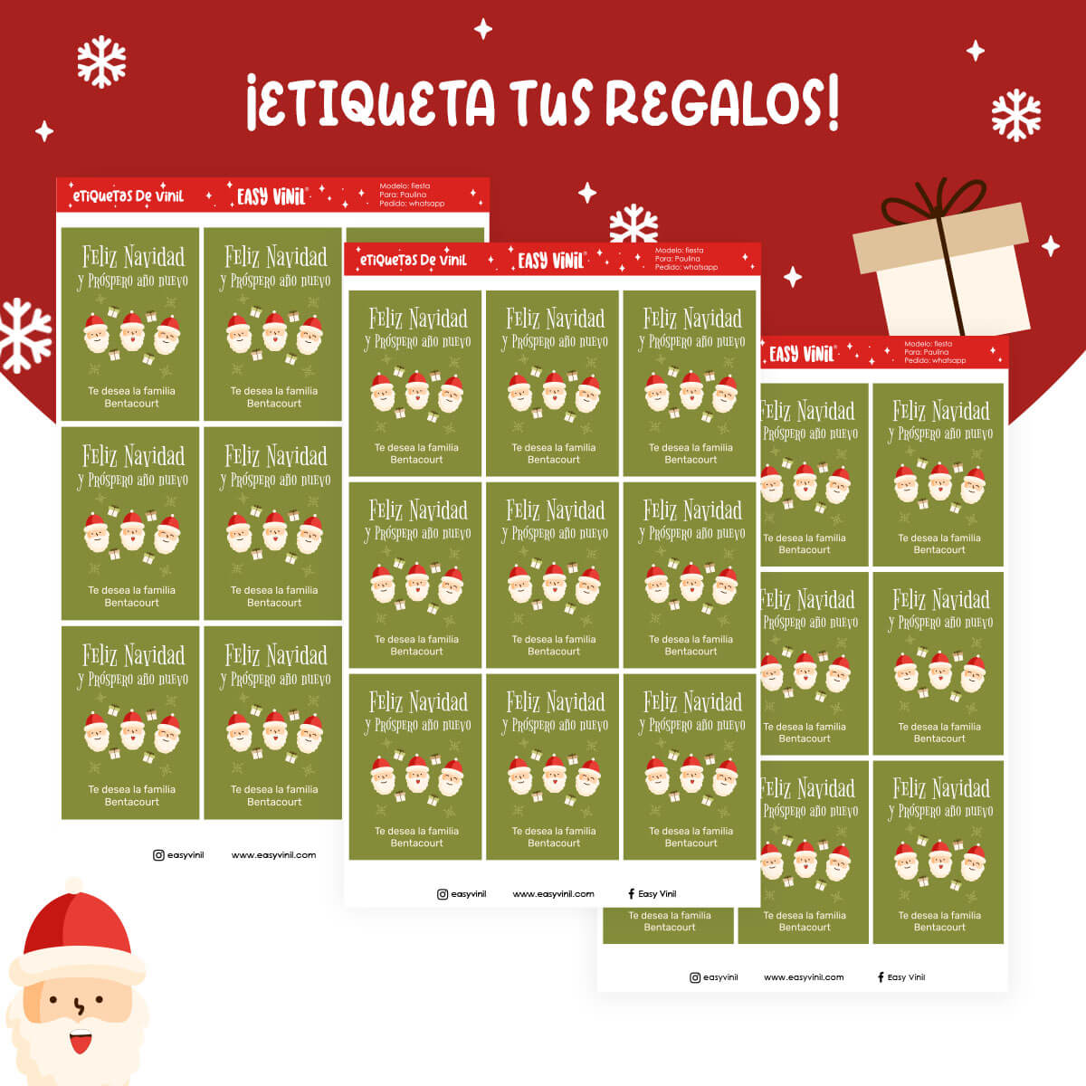 Etiquetas de vinil de temporada perfectas para etiquetar tus regalos navideños. Personalizalas con el nombre que desees. Ideales para los intercambios y detalles de la época.