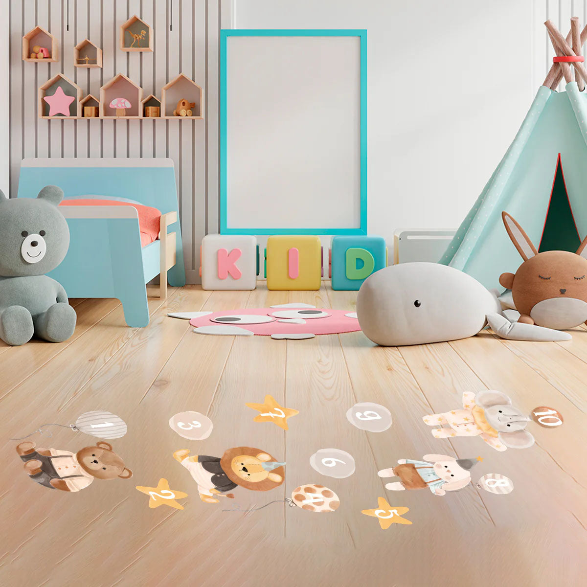 Los viniles decorativos para piso son increíbles para decorar las habitaciones de los pequeños. Están hechos de un material resistente, lo puedes barrer, lavar, trapear y quedará intacto.