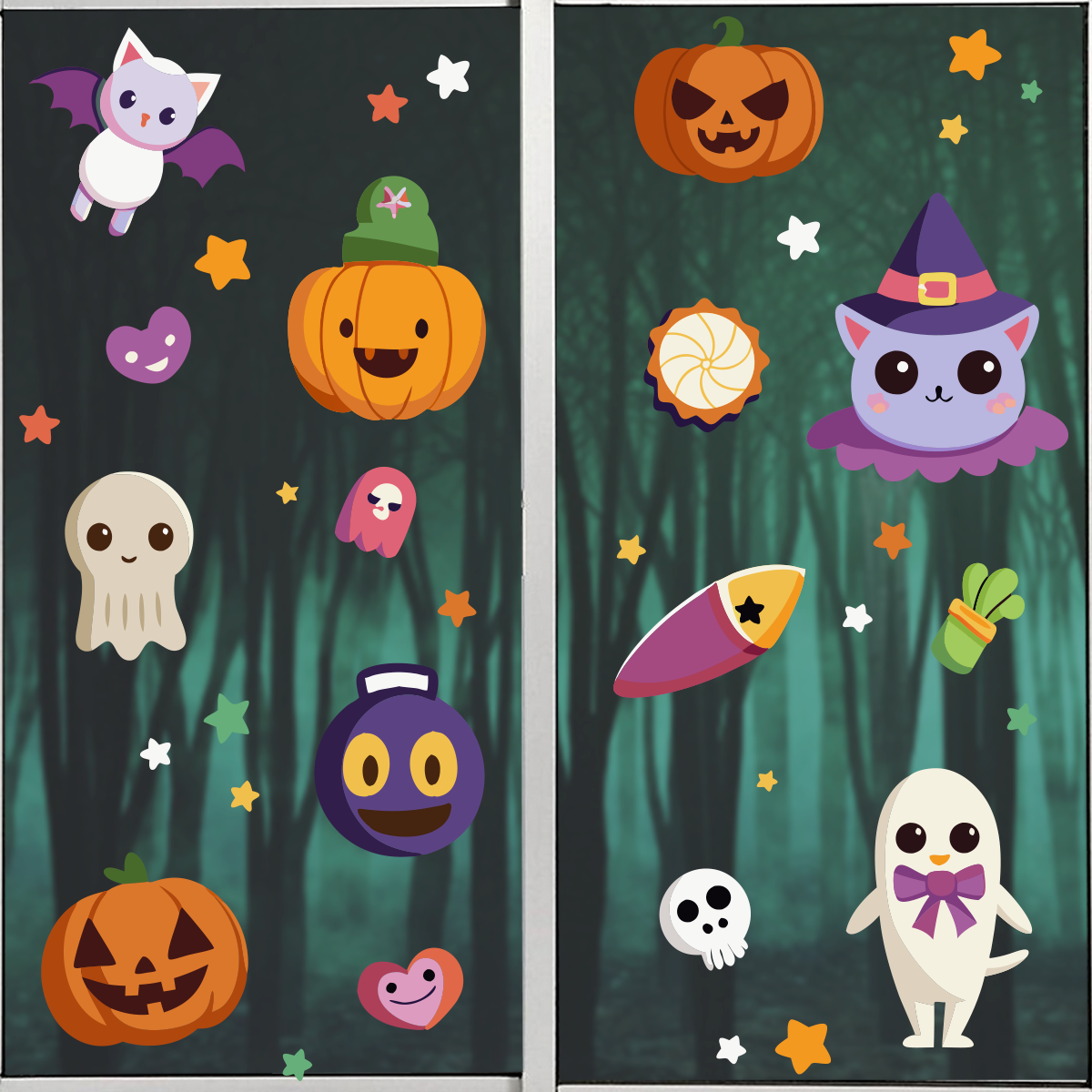 Hermosa decoración de temporada: Perfecto para fiestas de Halloween. 👻También puedes ponerlos en cualquier cosa en donde la superficie sea lisa y se pueda crear electroestática como ventanas, azulejos, espejos y algunos muebles. Ten la mejor decoración esta temporada de Halloween.