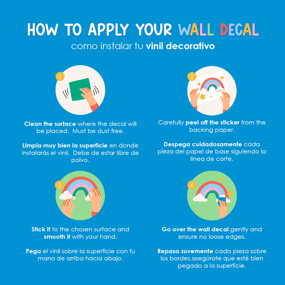 Nuestros viniles son diferentes a los demás. Nosotros nos preocupamos por la seguridad de tu familia por eso mismo utilizamos tintas ecológicas, no tóxicas, inhodoras y seguras para los niños. Utilizamos los materiales de la mejor calidad, son muy fáciles de instalar y son muy durables en interiores.