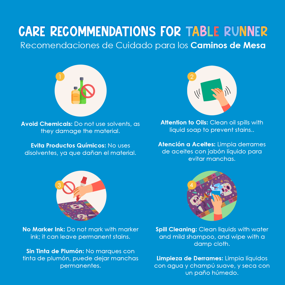Asegura la durabilidad de tus caminos de mesa de Halloween y Día de Muertos. Así podrás mantener en óptimas condiciones