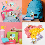 El combo back to school ha sido pensado para etiquetar rápidamente todas las pertenencias que los más chiquitos necesitan.
