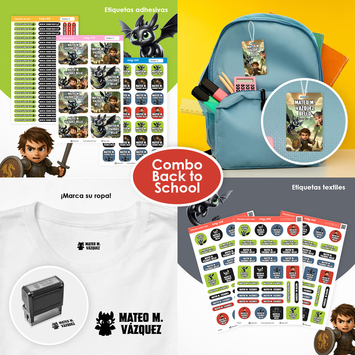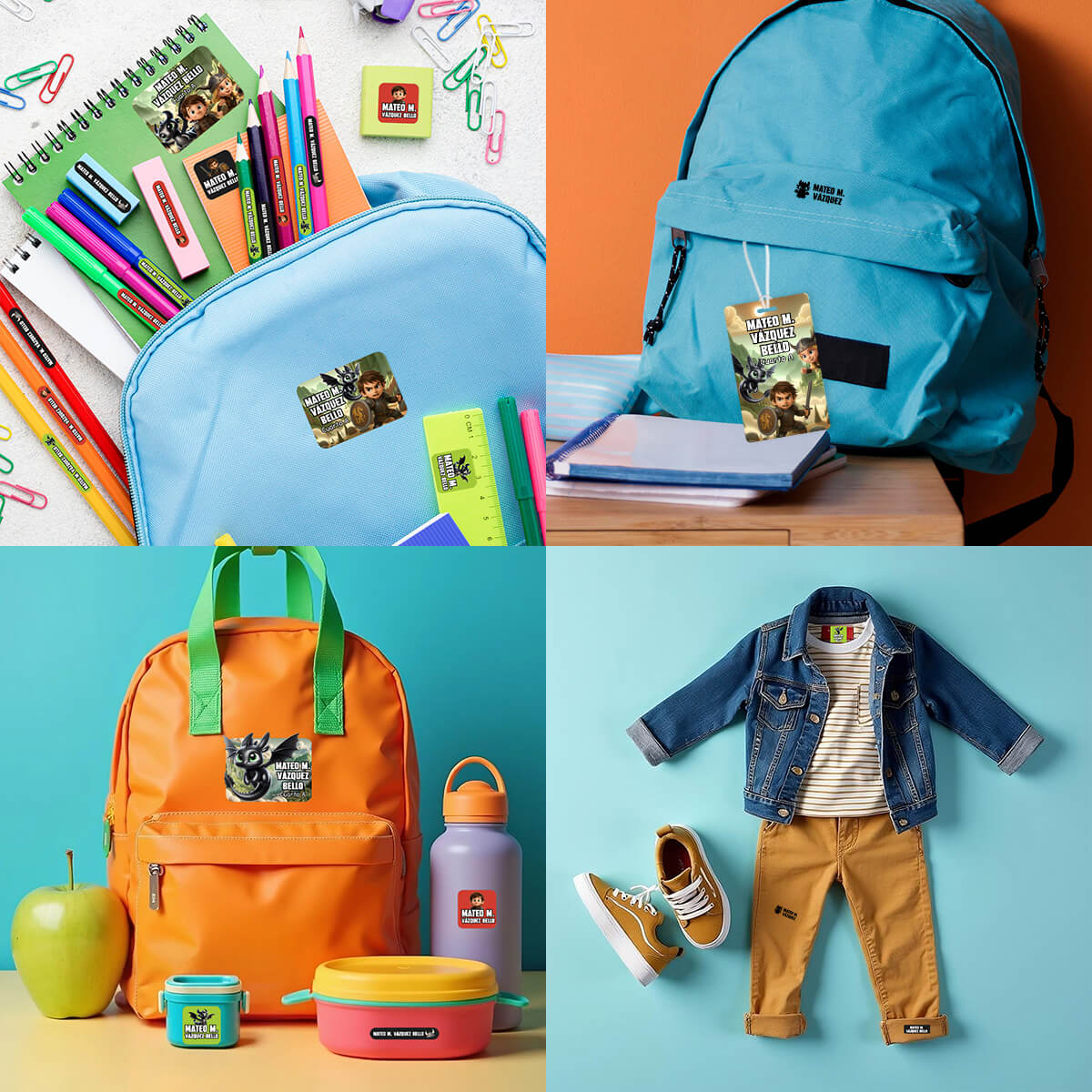El combo back to school ha sido pensado para etiquetar rápidamente todas las pertenencias que los más chiquitos necesitan.