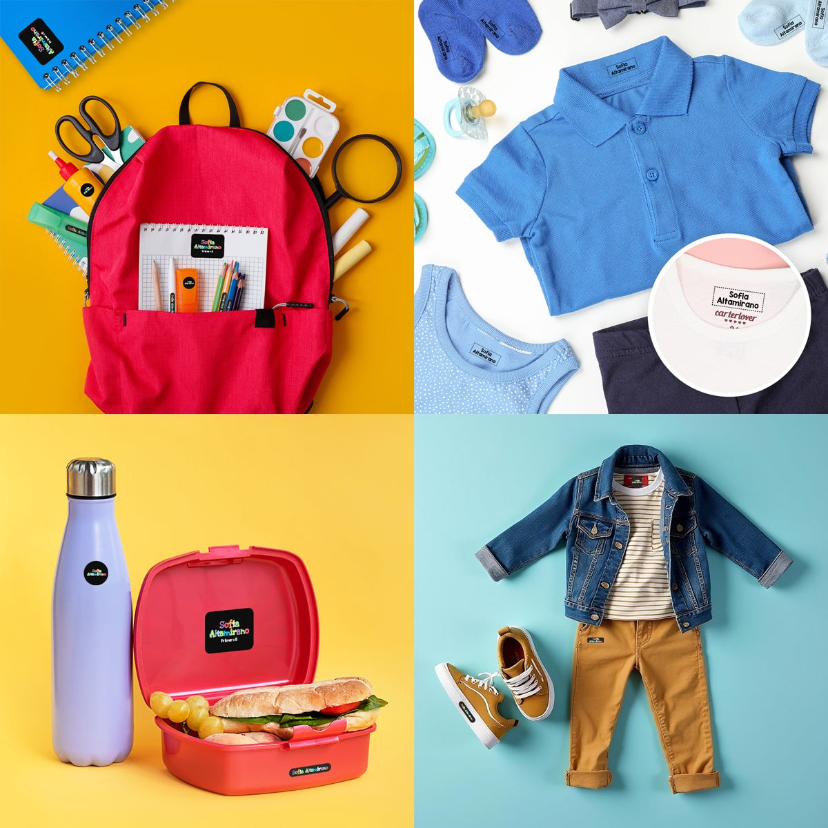 El combo guardería ha sido pensado para etiquetar rápidamente todas las pertenencias que los más chiquitos necesitan.