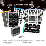 3 plantillas de etiquetas adhesivas: 1 chicas, 1 medianas y 1 grandes.