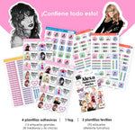 - 4 plantillas adhesivas: 16 etiquetas grandes, 28 medianas y 56 pequeñas