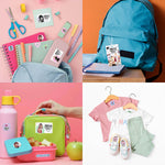 Etiqueta sus artículos personales con las adhesivas, etiqueta su ropita con las textiles y coloca una tag en su mochila.