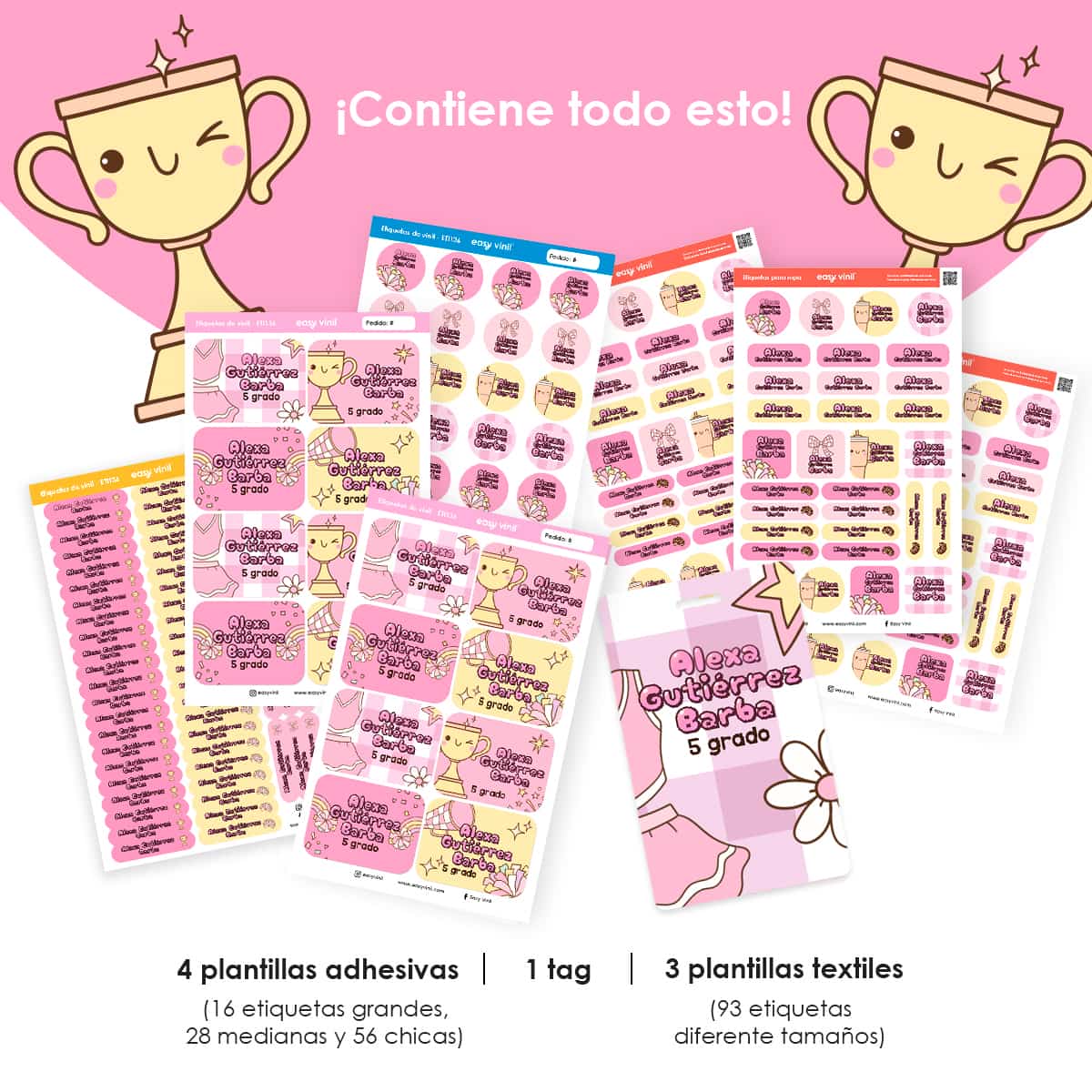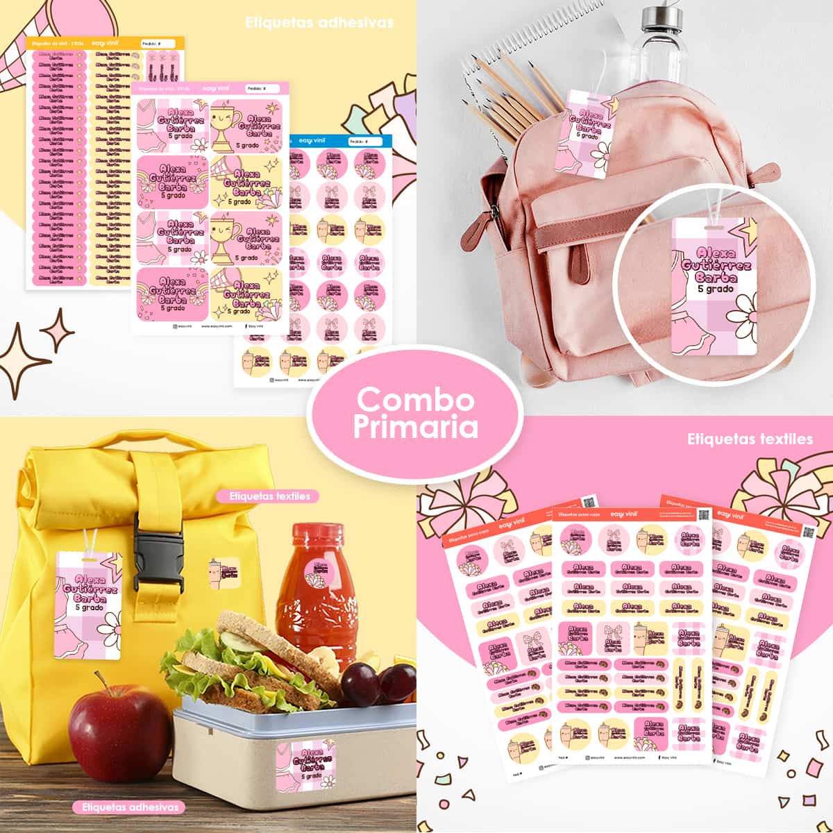 El combo primaria ha sido pensado para etiquetar rápidamente todas las pertenencias que los más chiquitos necesitan.
