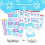- 4 plantillas adhesivas: 16 etiquetas grandes, 28 medianas y 56 pequeñas
