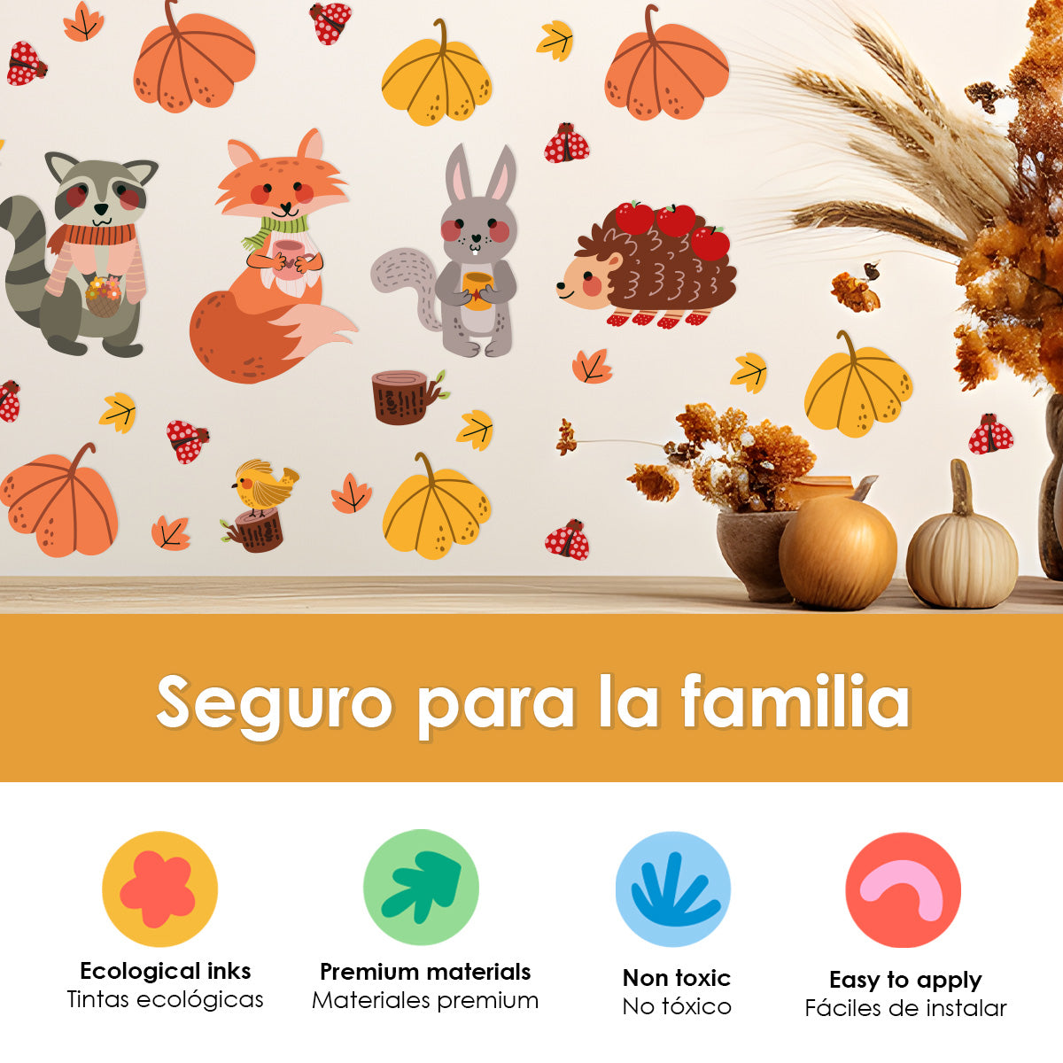 Ambiente Otoñal Encantador: Con nuestros viniles deco, podrás capturar la esencia de la temporada de otoño y llevar su belleza a tu hogar de manera sencilla pero efectiva.